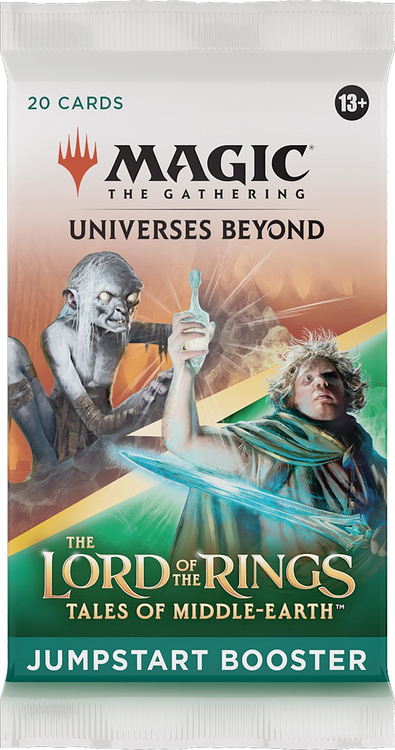 Cada sobre de Jumpstart de El Señor de los Anillos: relatos de la Tierra Media tiene una temática. Abre dos sobres y mézclalos para hacer combinaciones alocadas y vivir una experiencia de juego única perfecta para una partida rápida, para jugadores veteranos que quieran volver a Magic o para que los principiantes disfruten aprendiendo a jugar.