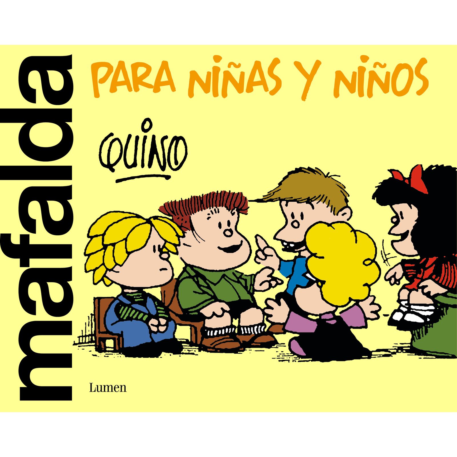 NO APTO PARA LECTORES ADULTOS. Por primera vez seleccionadas en un libro, las tiras de Mafalda exclusivas para los más pequeños. La sopa, el colegio, los amigos, los juegos, el amor, las peleas, las injusticias, los padres o los insufribles deberes Todas las alegrías y las di?cultades que conlleva ser un niño están en esta recopilación de las viñetas más tiernas, divertidas, soñadoras e inteligentes protagonizadas por Mafalda y sus inseparables Felipe, Susanita, Manolito, Libertad, Guille y Miguelito. Más de cincuenta años después de que Mafalda se publicara en España en una primera edición a la que la censura añadió en cubierta la mención «Para adultos», llega por ?n una edición exclusiva para los niños, la mejor manera de iniciar a los más pequeños en la lectura y el amor a unos personajes que los acompañarán toda la vida.
